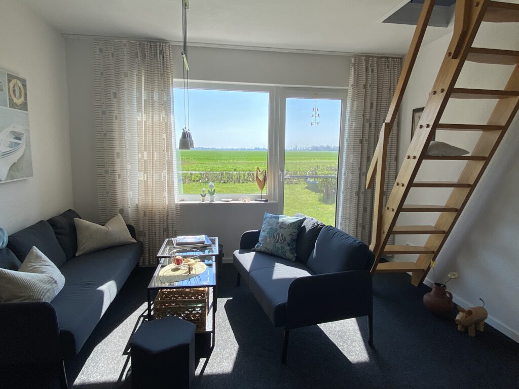 ein Wohnraum mit Essecke und Ausgang zur Terrasse;